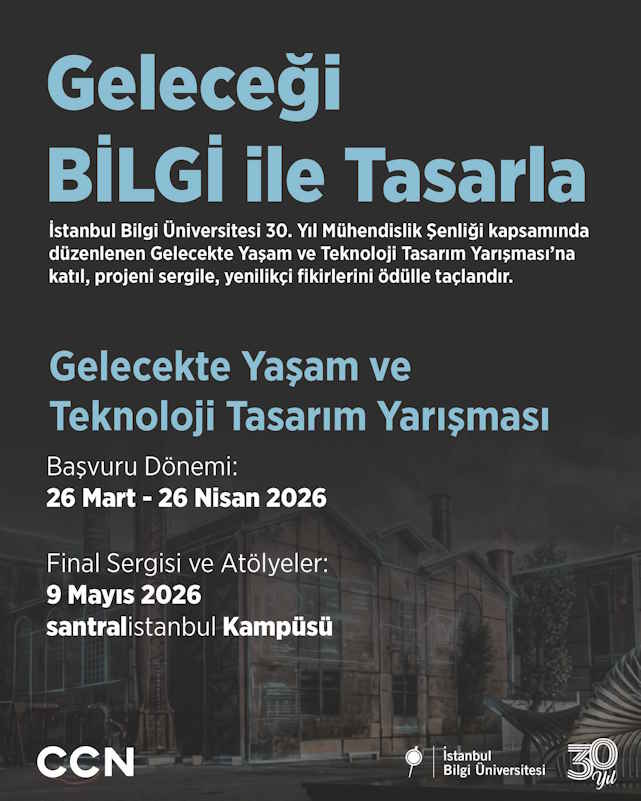 santralistanbul Kampüsü’nde düzenlenecek BİLGİ 30. Yıl Mühendislik Şenliği’nde buluşturuyor. BİLGİ Mühendislik ve Doğa Bilimleri Fakültesi’nin CCN katkılarıyla düzenlediği şenlik kapsamında Gelecekte Yaşam ve Teknoloji Tasarım Yarışması için başvurular başladı.Genç bilim insanı adaylarının mühendislik alanında üretimini teşvik etmeyi amaçlayan yarışmada lise öğrencileri, ekip olarak tasarladıkları özgün projelerle yarışacak; jüri değerlendirmesi ve katılımcı oylarıyla seçilen en iyi beş proje ödüllendirilecek.
